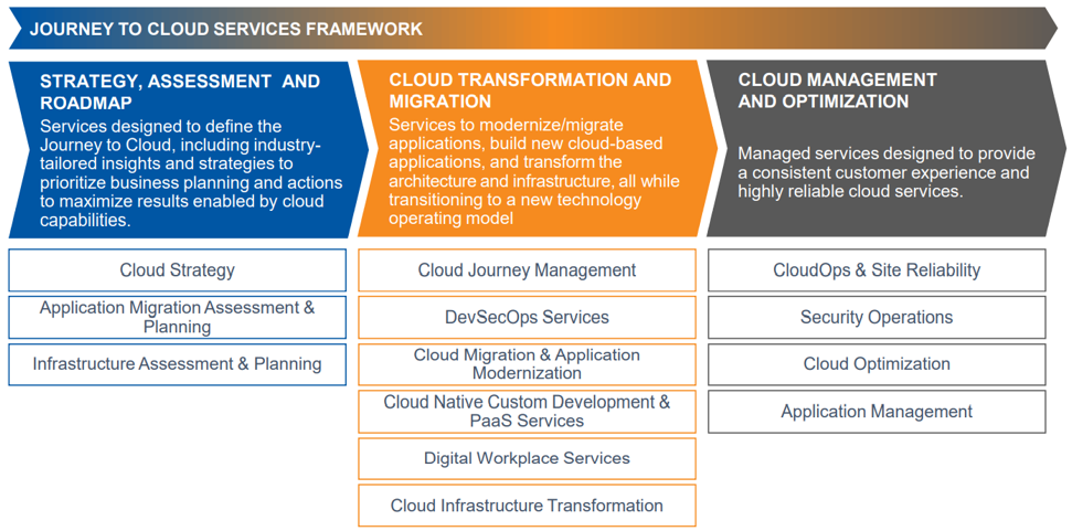Coforge’s industry-focused ‘Journey to Cloud’ framework helps the client move their business swiftly and safely to the cloud. As depicted in the diagram below, the ‘Journey to cloud’ framework covers all aspects of the Cloud journey, starting from Strategy and Planning to the ongoing management & operations.