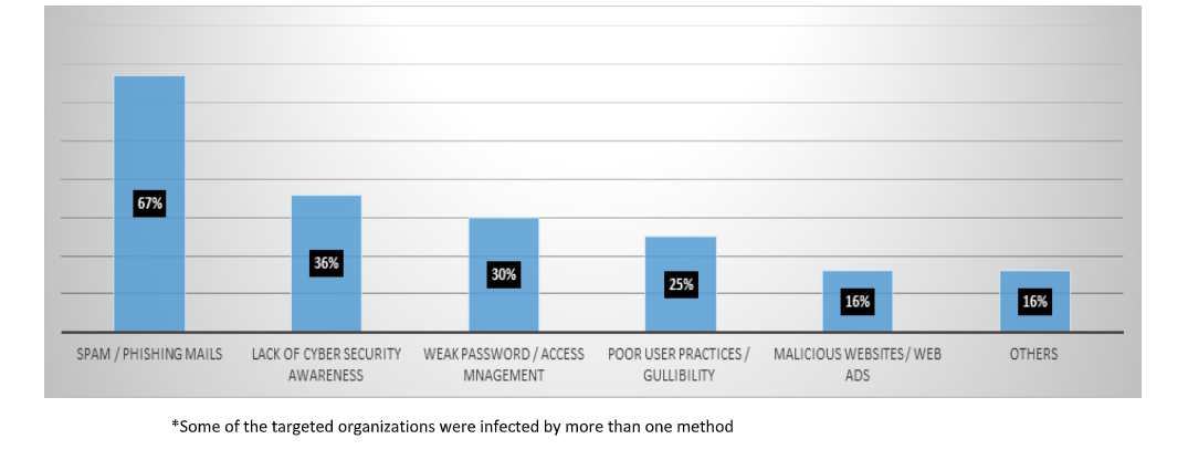 Following are the most common methods of ransomware attacks: