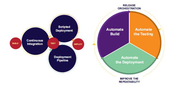- Automated Deployment of the build to upstream environments using tools like IBM uDeploy, Jenkins and CA‘s Release Automation