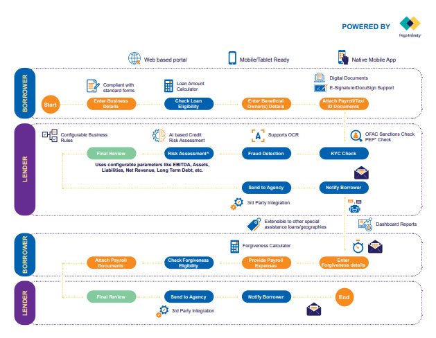 A flexible platform for banks to originate loans to SMB’s at scale and in compliance with changing government policies.