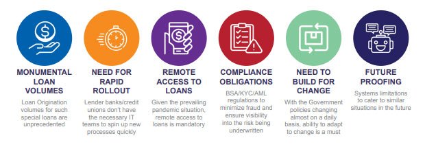 The Covid-19 situation is a good example of the need for SMB Assistance loans. With governments around the world announcing new relief loans and schemes on a weekly basis, lenders are inundated with thousands of loan requests. These situations mandate the need for smart and agile loan origination systems that can adapt to change and cater to high volumes, in real-time.