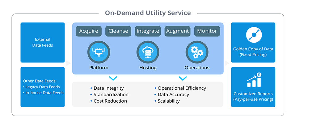 Data received as per your data source needs is cleansed and normalized to produce a golden copy of data in which all the users can see accurate and consistent information across the enterprise. With pay-per-use pricing, you can customize reports, charts, and analytics as per your requirements for each asset type. We ensure that the underlying processes and technology remain best-in-class, and agreed service-level agreements and key performance indicators are consistently met or exceeded throughout the duration of the engagement.