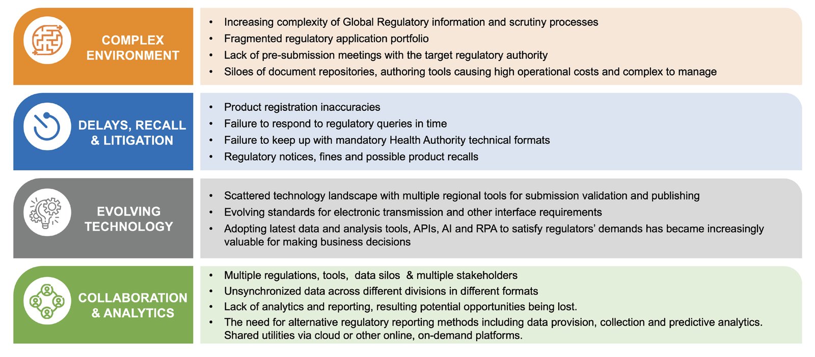 Regulatory compliance is one of the most crucial aspect in life sciences and lately, there has been a set of evolving global compliance standards that organizations are obliged to meet. Compliance has become more demanding in terms of effort and cost. The complexities of regulations leading to a global compliance anxiety are multifaceted; some of them are as below: