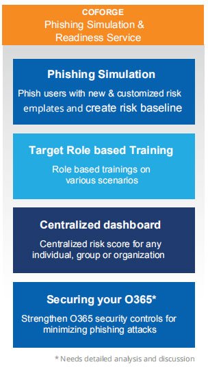 Coforge is committed to help you in times like this. Coforge’s Phishing Simulation & Readiness Services help up-level your security and prepare your end–users. Our services help improve Remote Employee Security and awareness during The COVID-19 pandemic, in return improve your organizations security posture. Our services under this program helps you to educate your staff and make considerations for the following: