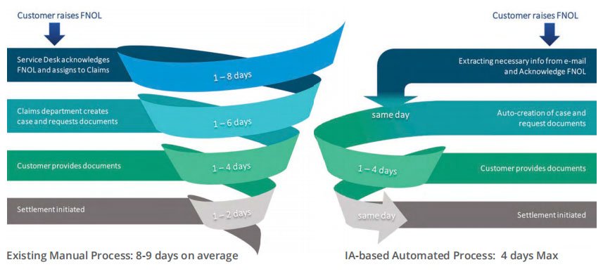 - Operational efficiency increased by 30-40% as simple requests such as password reset, procedures, product brochures, account statement, and premium paid certificate can be automatically process using Intelligent Automation
