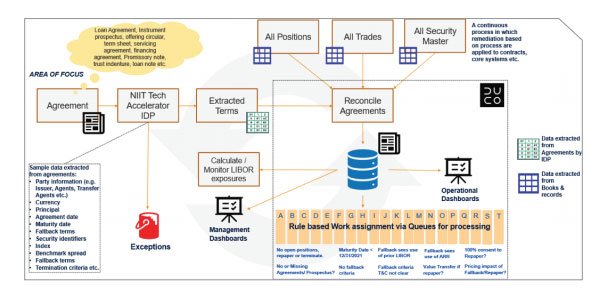 Coforge believes that it is important to have a mix of technology and strategic manual input as a part of any comprehensive LIBOR Transition.; to leverage technology to complement and thereby deliver a value add contribution to the desired business outcome. Discover, Analyze, Rationalize and Track (DART) methodology is the foundation for an Intelligent Document Processing platform that can help drive the LIBOR transition process for any financial services organization.