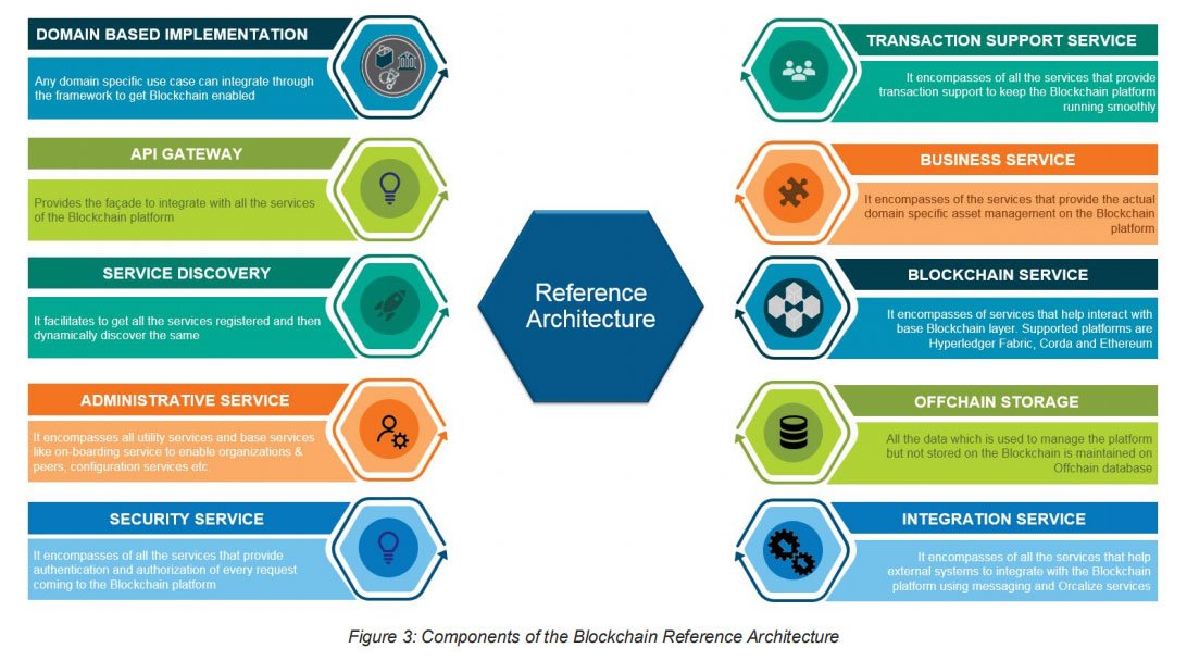 The reference architecture as outlined in the above diagram defines the various service components involved in enabling a complete Blockchain enablement platform. As the reference architecture framework and its reusable components and services are elaborated further, it should be noted that the framework is designed and developed to reduce the overall development effort needed for developing a robust Blockchain solution.