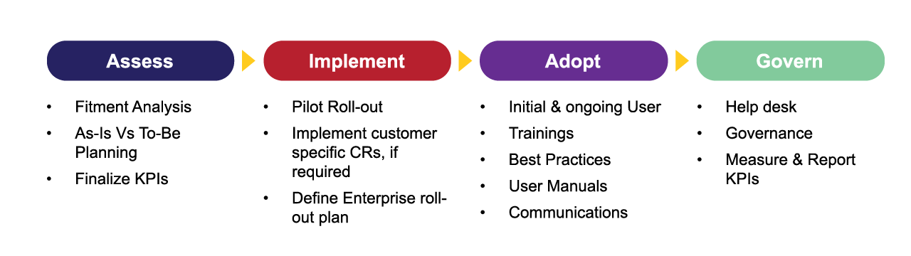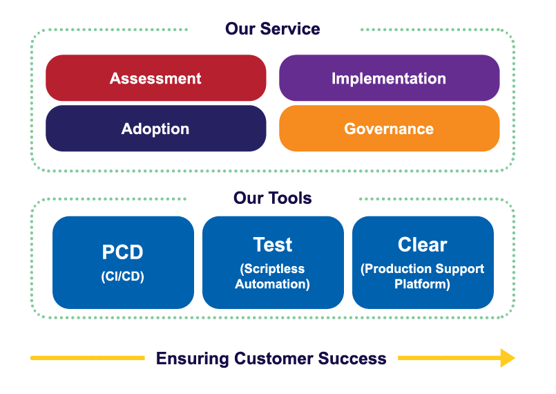 Coforge undertakes four main steps as part of the end-end DevOps service delivery. The core of this offering are the solutions which have evolved from delivery experience for large customers around the globe. Solutions include PCD for continuous delivery, CLEAR for Pega production support and TEST, for accelerated test automation for Pega applications.